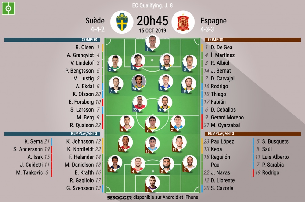 Les Compos Officielles Du Match De Qualification A L Euro Entre L Espagne Et La Suede